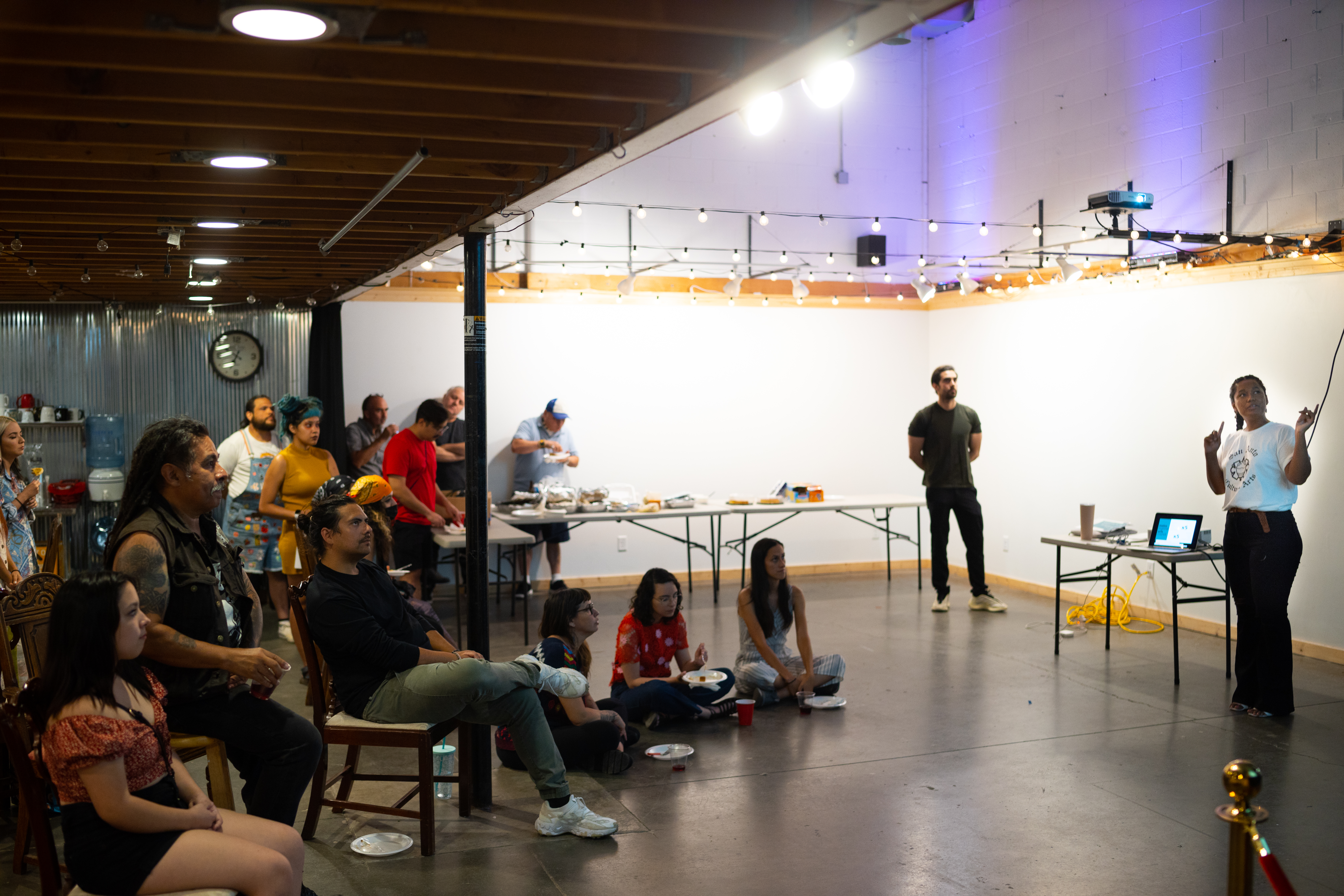Another type of programming made possible by MNT funding are the Serpentina Arts Talks. Serpentina Arts Talks are spaces where the Serpentin Arts community comes together to network, share resources, and learn about each other's artwork. Each meeting, a few members from the group are selected to deliver “art talks” or presentations about their artwork to the greater group. This gives artists an opportunity to gain experience giving art talks similar to the ones they may be asked to deliver at galleries or institutions. It also provides members an opportunity to learn about artwork being made by their peers. Speakers are paid for their presentations. All attendees are provided with refreshments and fed dinner.